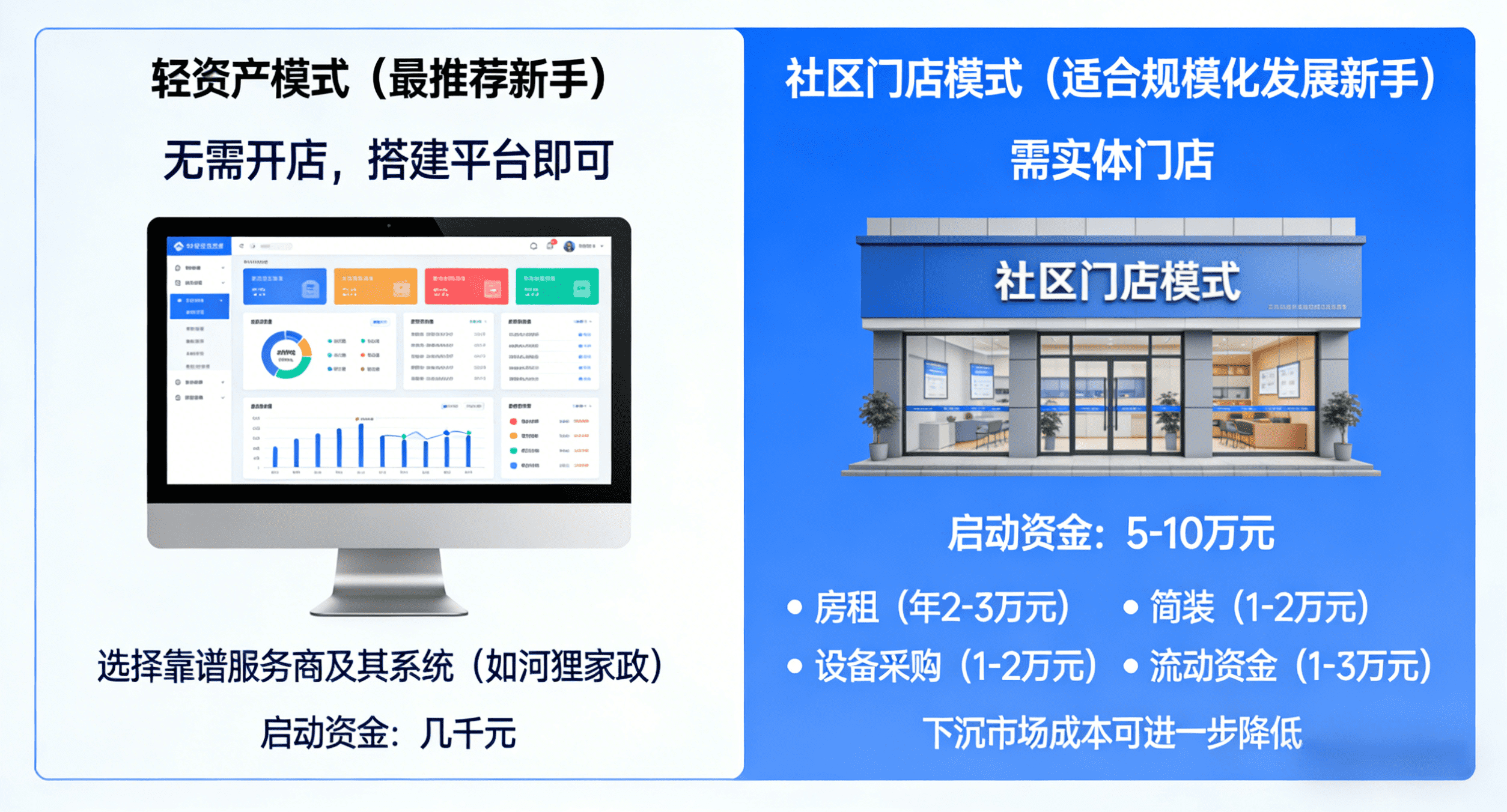 · 社区门店模式:适合想规模化发展的新手,启动资金5-10万元,包含房租(年2-3万元)、简装(1-2万元)、设备采购(1-2万元)和流动资金(1-3万元),下沉市场成本可进一步降低。